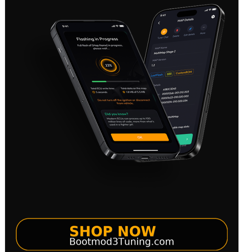 BOOTMOD3 Quick View bootmod3 B58 Tune - For BMW Fxx Gxx 140i 240i 340i 440i 540i 640i 740i 840i Z4M40i M140i M240i M340i X3 M40i X5 X7 Vehicles $595.00 Add to Cart Added! Quick View bootmod3 S58 Tune - For BMW F97 F98 G80 G82 G87 G83 X3M X4M M2 M3 M4 Competition Vehicles $595.00 Add to Cart Added! Quick View bootmod3 B48 B46 Tune - For BMW Fxx Gxx 120i 125i 220i 225i 230i 320i 330i 330e 530e 420i 430i 520i 530i X1 X2 X3 X4 20i 25i 30i Vehicles $595.00 Add to Cart Added! Quick View bootmod3 FlexFuel Kit - High Flow $599.00 BMW F-SERIES S55 / N55 - UNDER VEHICLE LOCATION KIT BMW F-SERIES S55 / N55 - OEM FUEL HAT LOCATION BMW F-SERIES B58 / 48 - OEM FUEL HAT LOCATION BMW F-SERIES B58 / B48 - ENGINE BAY LOCATION BMW G-SERIES GEN1 B58 / B48 - OEM FUEL HAT LOCATION BMW G-SERIES GEN1 B58 / B48 - ENGINE BAY LOCATION G-SERIES GEN2 B58 / B48 - OEM FUEL HAT LOCATION G-SERIES GEN2 B58 / B48 - ENGINE BAY LOCATION BMW F-SERIES S58 F97 F98 X3M/X4M PRE-LCI (2019-2021) ENGINE BAY LOCATION KIT BMW F-SERIES S58 F97 F98 X3M/X4M PRE-LCI (2019-2021) OEM FUEL HAT LOCATION KIT BMW G-SERIES S58 - OEM FUEL HAT LOCATION BMW G-SERIES S58 - ENGINE BAY LOCATION TOYOTA A90 A91 SUPRA / BMW G29 Z4 - ENGINE BAY LOCATION Add To Cart Added! Quick View bootmod3 FlexFuel Kit - Basic $499.00 BMW F-Series B58 / B48 - Engine Bay Location (PR360) BMW F-series F97 X3M/X4M S58 PRE-LCI (2019-2021) Engine Bay Location (PR360) BMW G-series Gen1 B58 / B48 - Engine Bay Location (PR360) BMW G-series Gen2 B58 / B48 - Engine Bay Location (PR360) BMW G-series S58 - Engine Bay Location (PR360) Toyota A90 A91 Supra / BMW G29 Z4 - Engine Bay Location (PR360) Add To Cart Added! Quick View bootmod3 B58 Tune - For Toyota A90 A91 Supra Vehicles $595.00 Add To Cart Added! Quick View bootmod3 N55 Tune - For BMW F-series M135i M235i 335i 435i 535i ActiveHybrid3 640i 740i X3 X4 X4M40i X5 X6 M2 Vehicles $595.00 Add to Cart Added! Quick View bootmod3 S63TU4 Tune - For BMW F9X M5 M8 X5M X6M Vehicles $895.00 Add to Cart Added! Quick View bootmod3 N63T3 - BMW G-series M550 750i M850i X5M50i X6M50i X7M50i Tune $895.00 Add to Cart Added! Quick View BOOTMOD3 N63T2 - BMW G-SERIES M550 750I TUNE $895.00 Add to Cart Added! Quick View REV2 Controller - Powered by bootmod3 DirectPWM and FlexRay™ from $1,699.00 View Options Quick View bootmod3 N20 N26 Tune - For BMW F10 F20 F21 F22 F30 F32 125i 220i 228i 320i 328i 420i 428i 520i 528i X3 X4 Vehicles $595.00 Add to Cart Added! Quick View bootmod3 S55 Tune - For BMW F80 F82 M3 M4 F87 M2 Competition Vehicles $595.00 Add To Cart Added! Quick View bootmod3 B48 B46 Tune - For MINI F54 F55 F56 F57 F60 Cooper S JCW Vehicles $595.00 Add to Cart Added! Quick View bootmod3 S63TU Tune - For BMW F10 F12 F13 F85 F86 F92 M5 M6 M8 X5M X6M Vehicles $895.00 Add to Cart Added! Quick View bootmod3 N63TU Tune - For BMW F01 F10 F12 F15 F16 550i 650i 750i X5 X6 50i Vehicles $895.00 Add to Cart Added! Quick View BOOTMOD3 N13 - BMW F20 F30 114I 116I 118I 316I 320I TUNE $495.00 Add to Cart Added! Quick View REV2 Controller - Coolant Pressure Sensor Kit - For BMW B58 S58 Vehicles from $149.00 Select Option Exclude Sensor & Harness Include Sensor & Harness Add to Cart Added! World’s Most Advanced and Widely adopted factory ECU Tuning Platform for BMW F and G series Vehicles and the 2020+ Toyota Supra and Mini