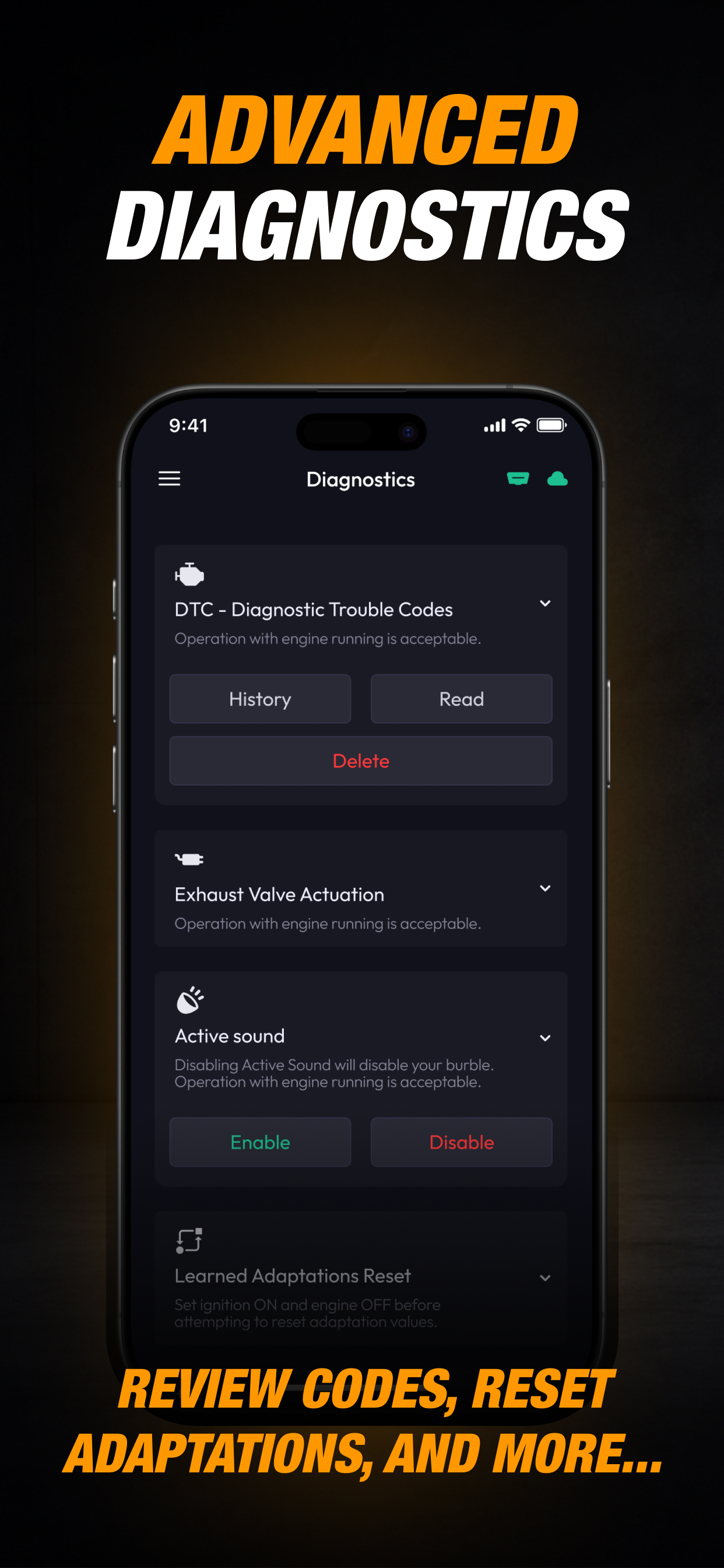 - Live Dash - realtime vehicle parameter monitoring via in-app gauges